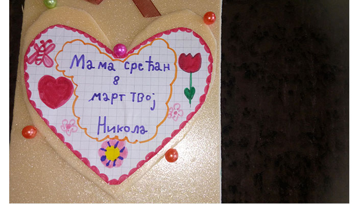 Након изведене приредбе ученици су уручили мама и бакама честитке, а све присутне послужили медењацима.